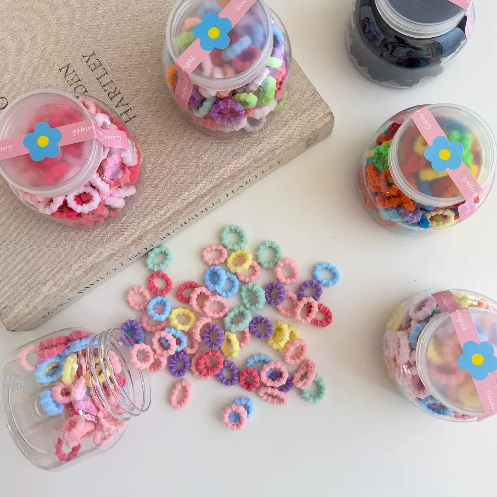ligas minis con diseño, en botes, variedad de colores, codigo a212bis