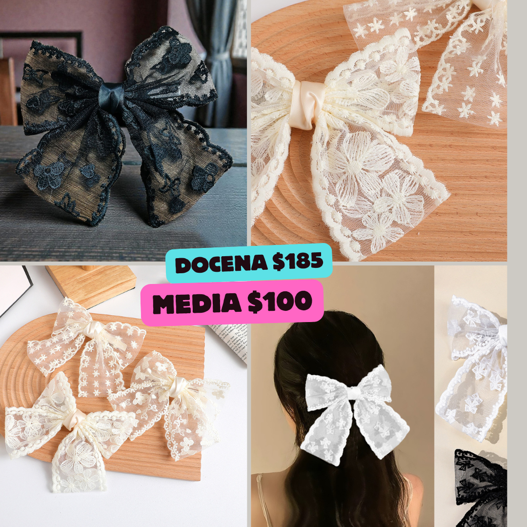 moño blanco y negro de encaje, codigo a274